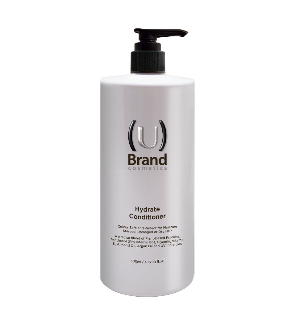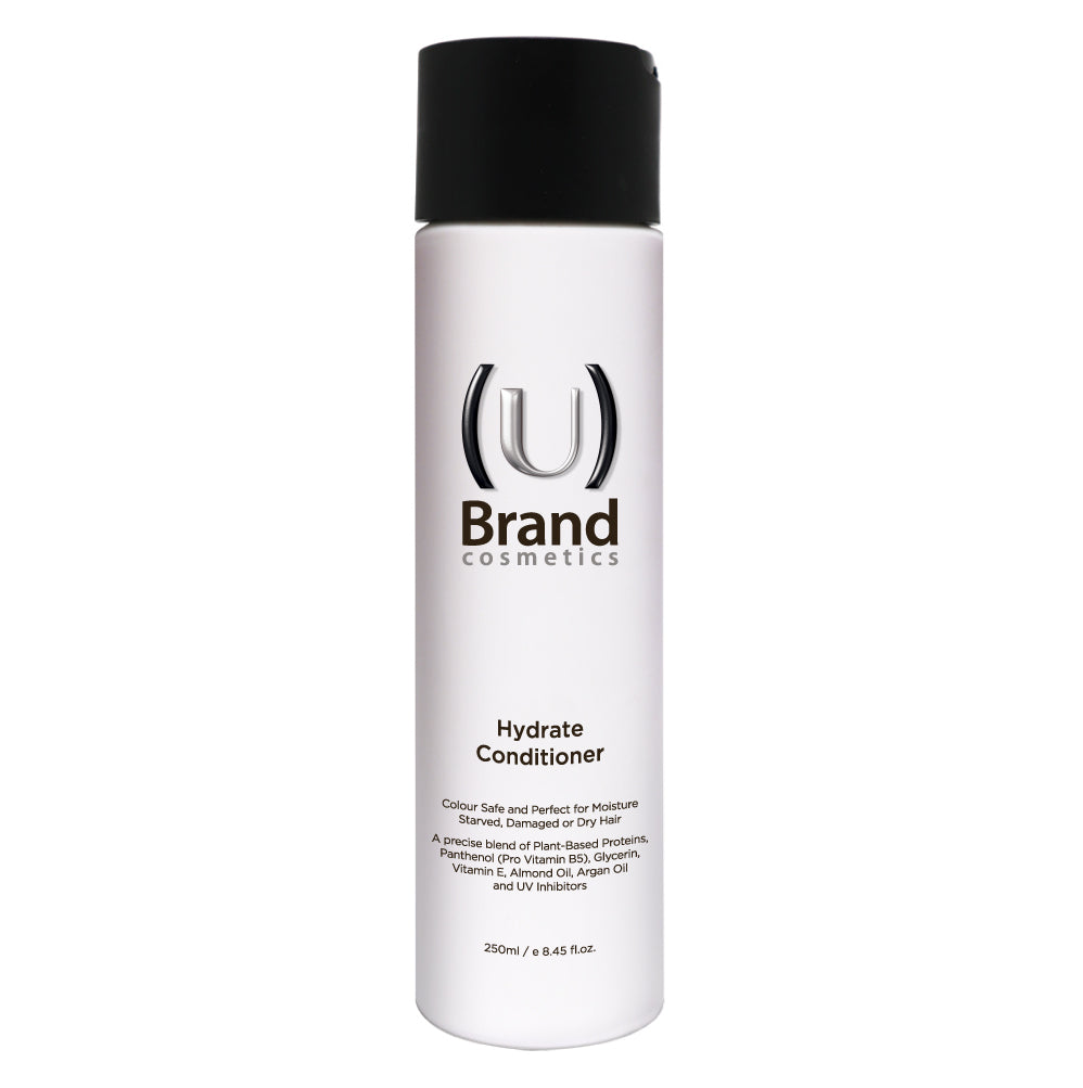 Intensive Hydration for Moisture Starved Hair. The finishing touch to our Hydrating Hair Care regimen. U Brand Hydrate Conditioner is the ultimate in treating moisture starved, damaged or dry hair. Rich conditioning agents and anti-oxidants actively seek out and help reconstruct damaged hair, while proteins and natural silicones improve overall condition, to leave a long lasting, deep shine. Perfect for Dry or Fine Hair. Lose yourself in the moment with this wonderfully luxurious treatment product.