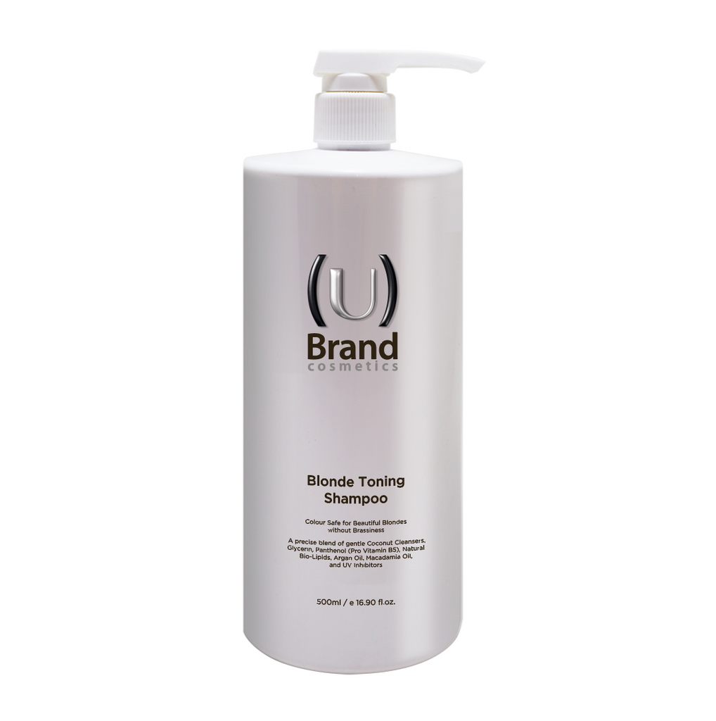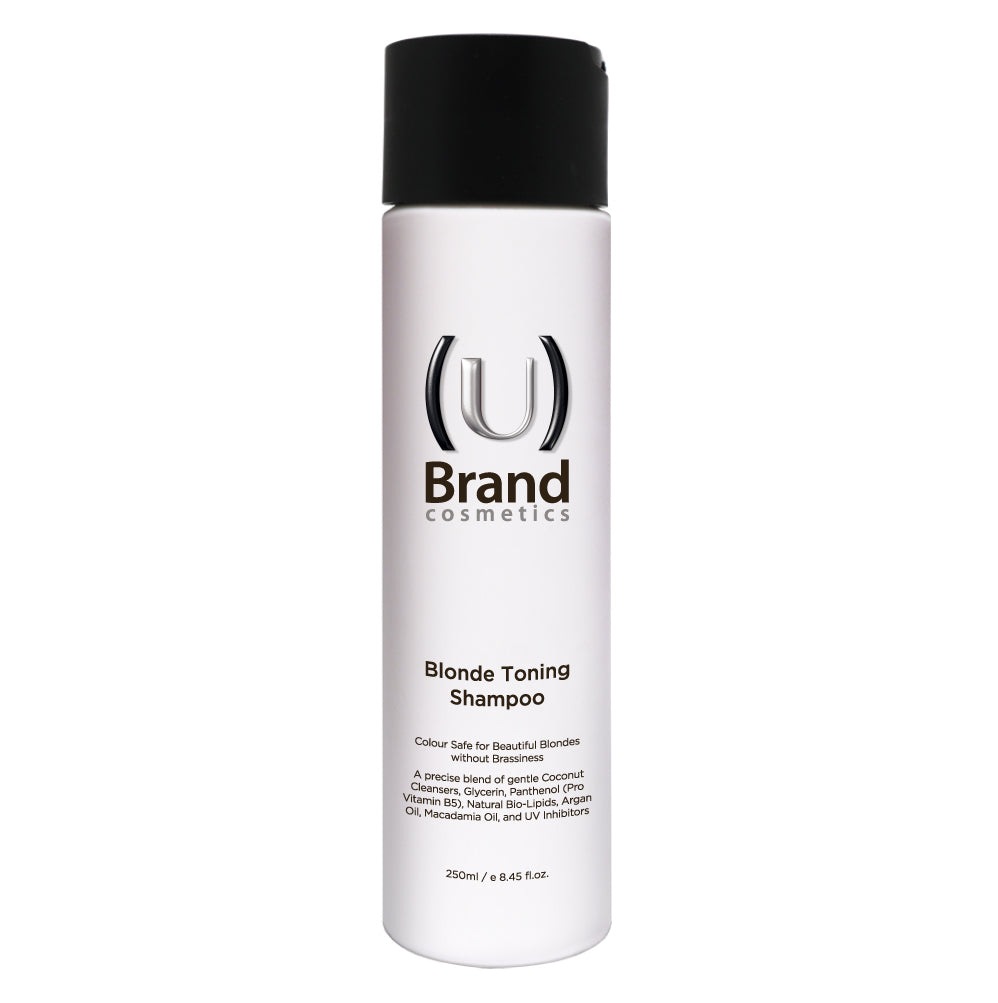 Beautiful Blonde one minute...perfect the next. Our luxurious Blonde Toning Shampoo, enriched with Argan Oil, phyto-nutrients and exotic botanicals, gently cleanses the hair and scalp with natural coconut-based cleansers to leave hair full of body, perfectly toned, but never brassy, with a to-die-for shine. Creamy texture and thick luscious micro-bubbles meld with an intoxicating fragrance to complete the ultimate spa experience. U Brand's Blonde Range provides added UV, Colour and Heat Protection so Blondes stay more natural and hair looks healthy with an unbeatable shine. Brassiness begone with this Blonde Toning Product.